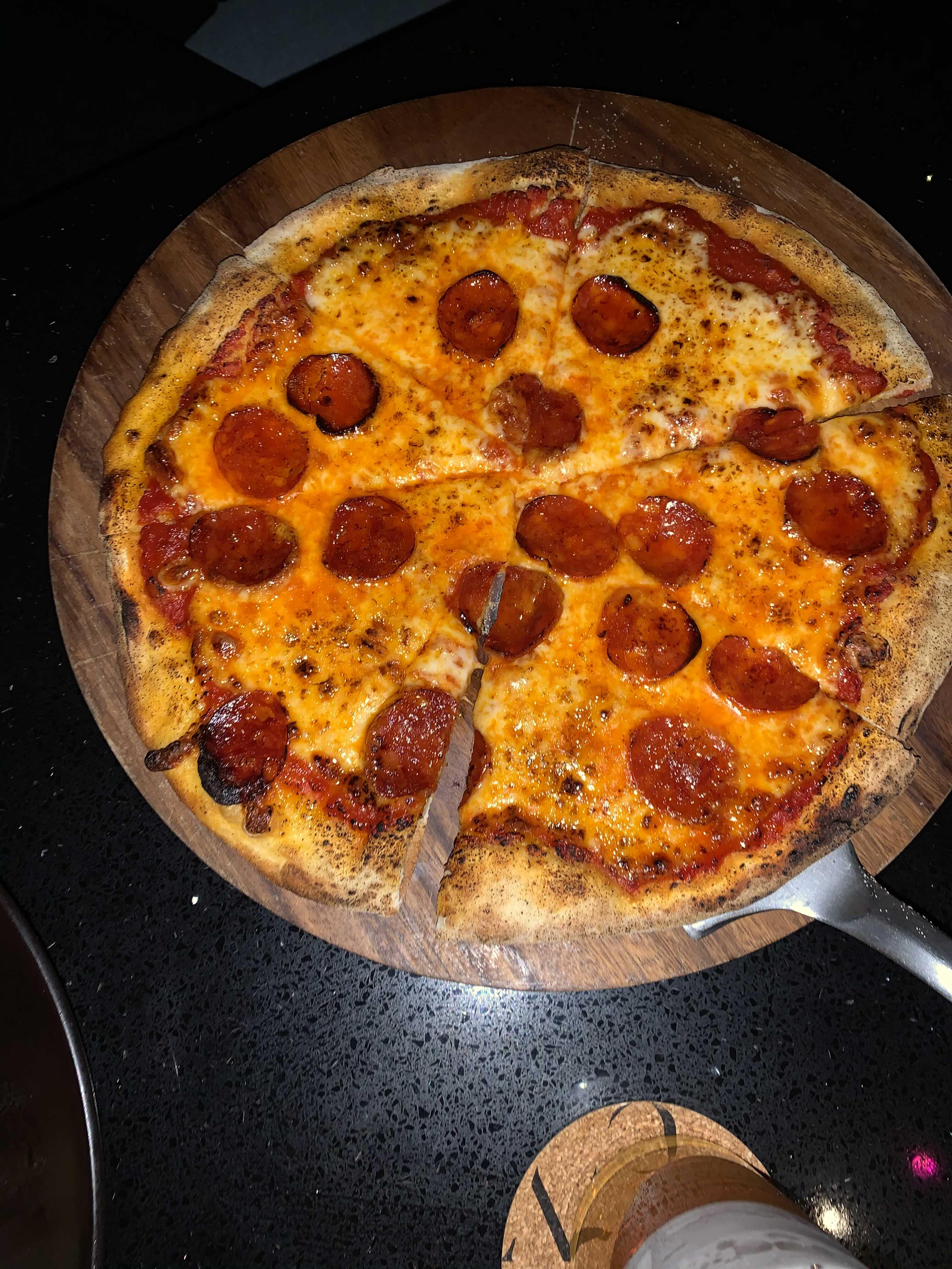 조금 더 매콤하면 좋았을 쵸리죠 피자. 그래도 치즈가 굉장히 맛나서 기대 이상이었다 ㅎㅎㅎ 음식은 모두 펍에서 요리하는게 아니라 호텔 레스토랑 챠르에서 만들어 올라온다고. 그래서 다들 고퀄이었나 싶음.... :)